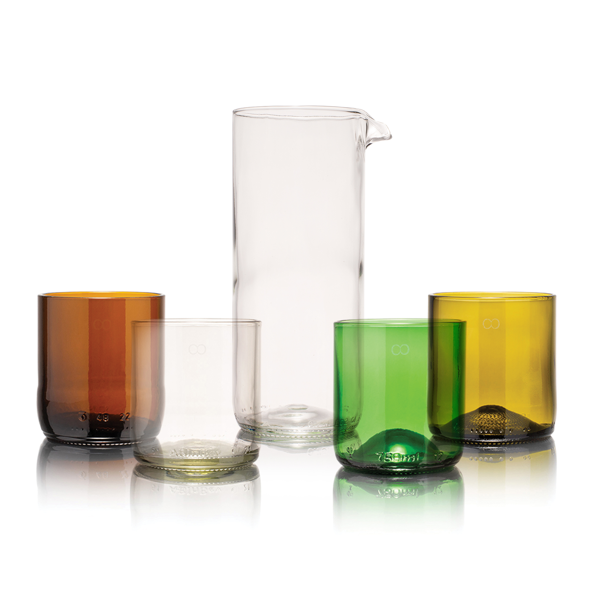 Deze sets laten zien hoe je van lege flessen wijn hoogwaardige producten kan maken. De glazen liggen lekker in je hand, hebben een gladde afwerking en bevatten de ideale inhoud. Ze zijn perfect te gebruiken voor water, frisdrank of cocktails.