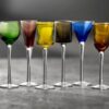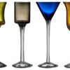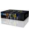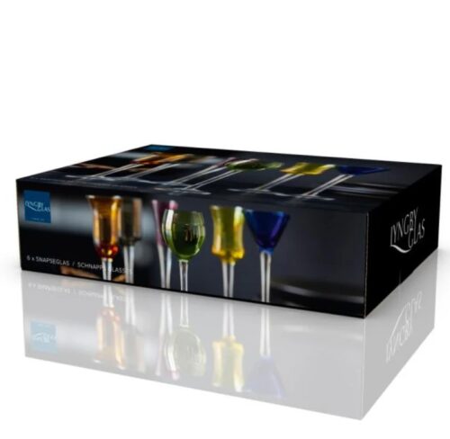 De vrolijke kleuren van deze set zorgen voor een feestelijk geheel en door de verschillende kleuren en modellen kan iedereen zijn eigen glas eenvoudig herkennen. De schnapsglazen hebben verschillende designs in de kleuren paars, blauw, rook, amber, groen en geel.